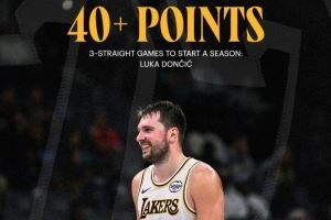 湖人官方:东契奇开季连续三场40+得分!上一位做到的是张伯伦!
