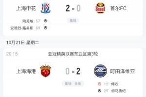 上海申花2-0击败首尔FC,上海海港0-2不敌町田泽维亚,成都蓉城0-2不敌柔佛新山。
