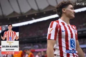 体育资讯09月28日讯 本轮西甲马竞5-2大胜皇马,送对手赛季首败,本场打进任意球并梅开二度的阿尔瓦雷斯当选本场最佳球员!